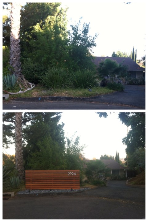 Here is the before and after of our horizontal fence. All made from Clear Cedar and oil finished for long lasting protection. Numbers ordered from www.modernhousenumbers.com .