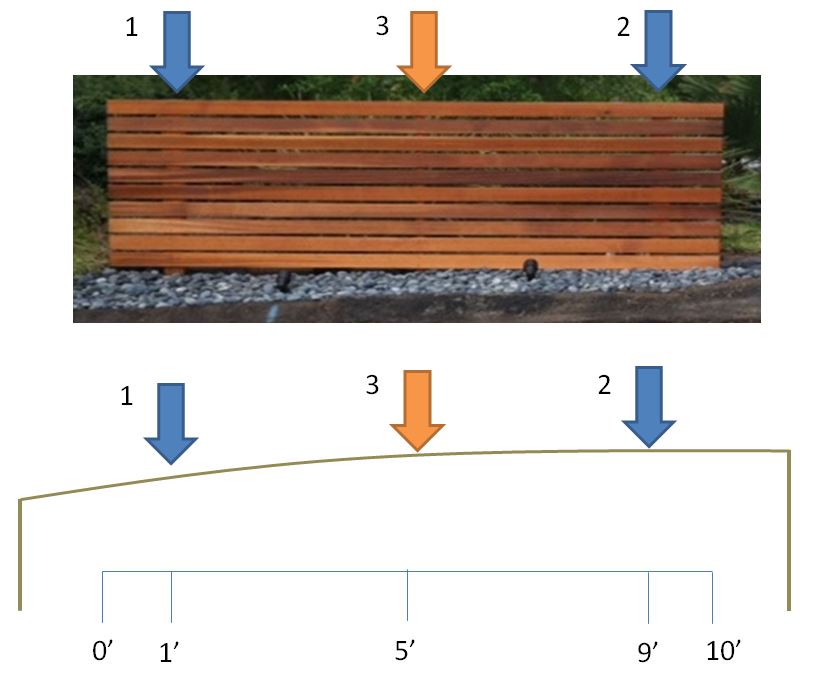 2.Mark the locations for the 3 main holes. For a 10ft fence you would make a hole a 1′,5′ and 9′.