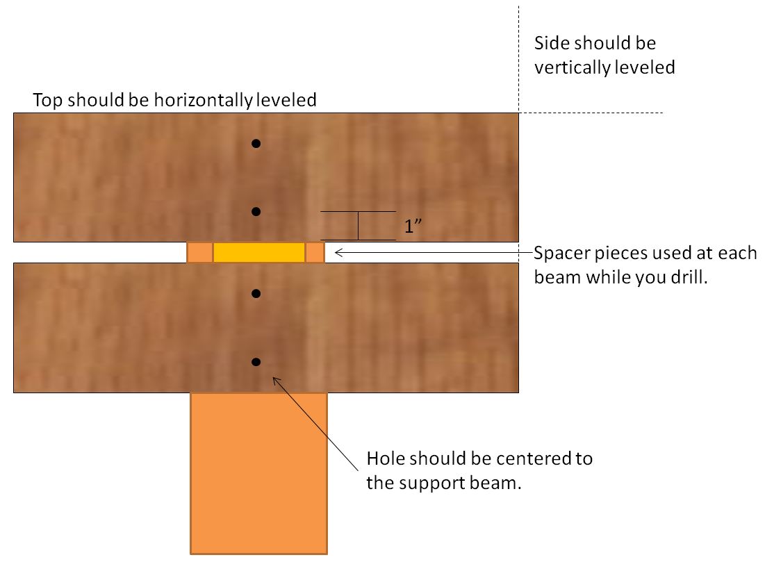 A good way to make sure your spacing is correct is to grab 3 pieces of scrap wood that is 5” thick and use these as spacers. These will be used as you start to attach the remaining pieces.