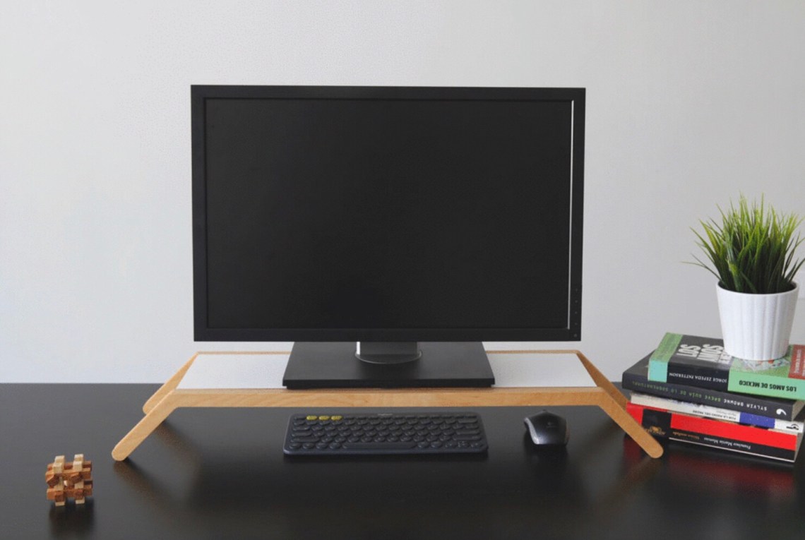 The design for our monitor riser is simple and minimal and ships assembled. Currently available in white but can be made in charcoal grey or any other color, please reach out for a custom quote.