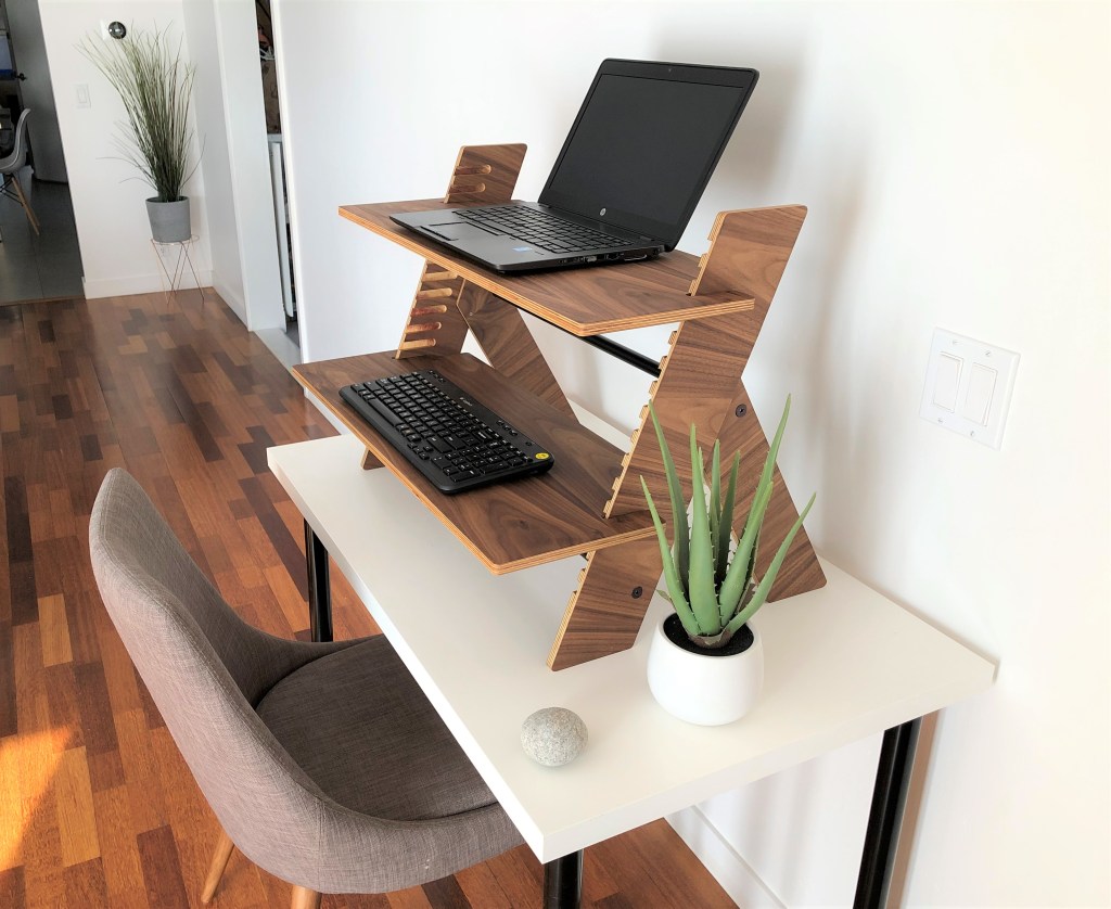 Short on room and think it might be impossible to fit a traditional desk in your home office? The good new is there are modern standing desks that take up minimal room but still serve the same purpose. Offering a cradle for your laptop and a shelf for your keyboard, our Alto Stand creates a work station without taking up much space.